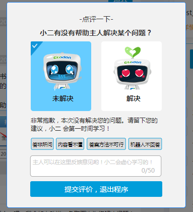 场景:用户可以对答案进行评价及反馈;在会话结束时,用户可以对会话进行评价及反馈。