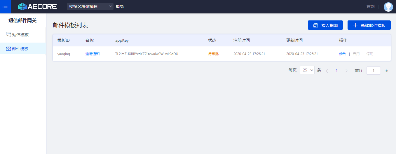 获取邮件、短信模板操作:1、登录AECORE;2、开通邮件短信服务;3、创建邮件、短信模板