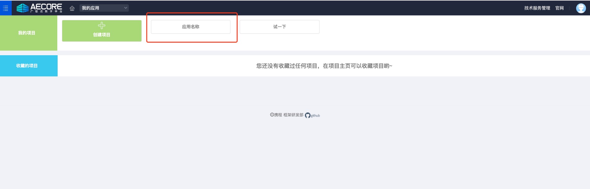 登录AECORE,并创建应用,创建应用后即可获取appkey、appsecret,这是调用服务的秘钥请妥善管理。