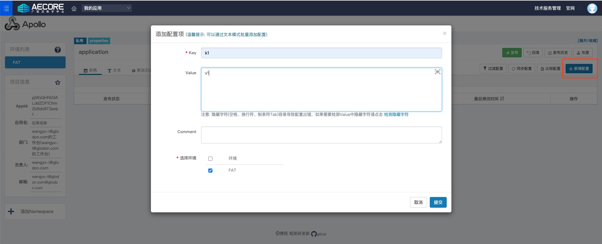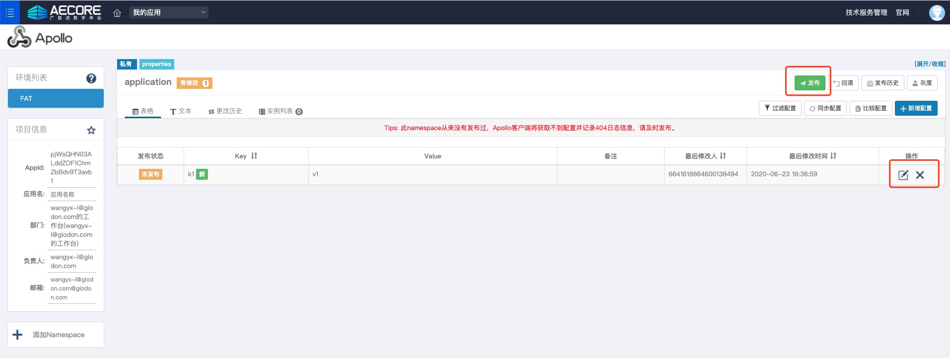 在配置管理页面可编辑相应的配置并发布