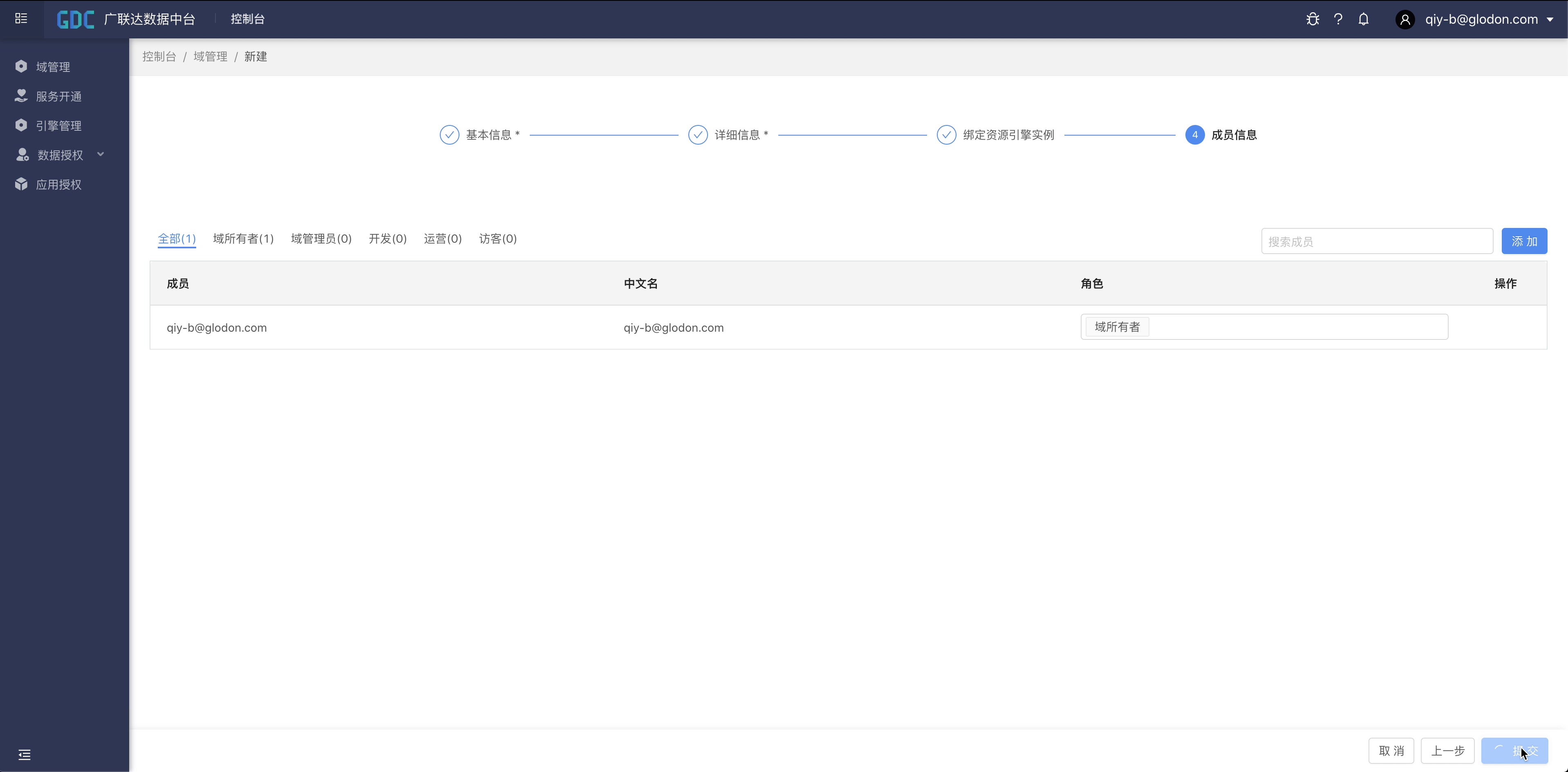 最后,选择域成员以及角色,点击“提交”,域就创建完成了。