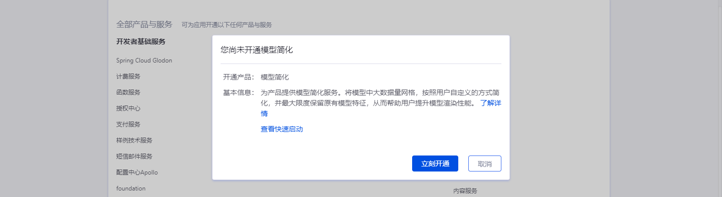使用模型简化服务前,请先开通函数服务。